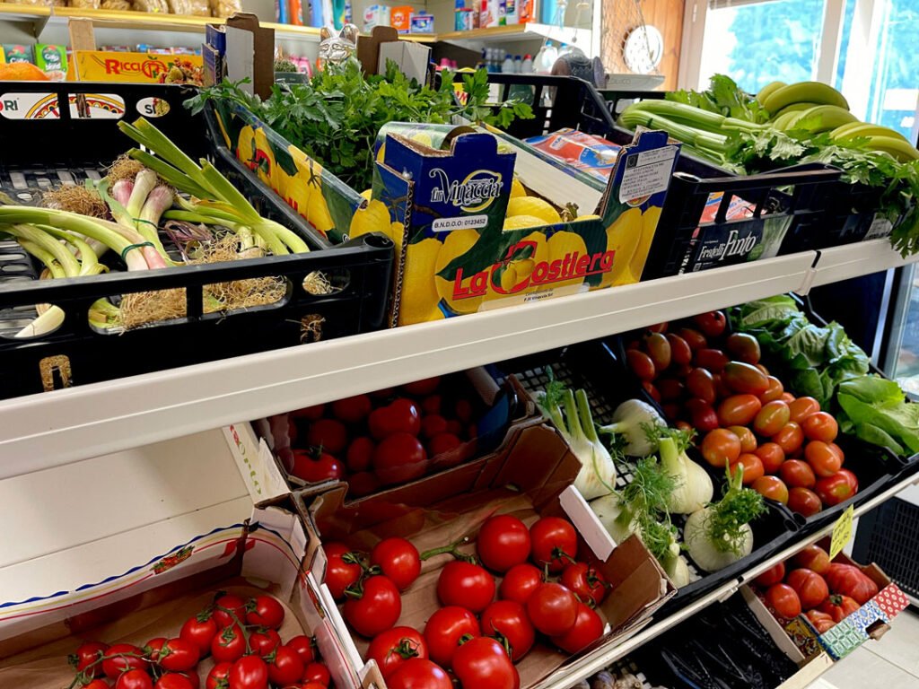 All’interno del negozio è possibile trovare pasta confezionata e prodotti alimentari di uso quotidiano, insieme a frutta e verdura fresca di stagione. Non mancano pane e pizza, affettati e formaggi selezionati, carne e surgelati, ideali sia per organizzare un pic-nic sul lago sia per preparare un pasto semplice durante il soggiorno. L’assortimento è pensato per essere funzionale e concreto, adatto a chi resta pochi giorni ma anche a chi si ferma più a lungo.