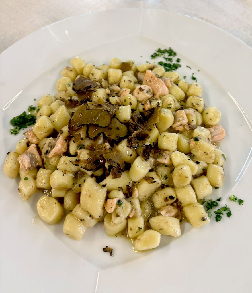 Uno dei piatti simbolo sono i Carboneratti, preparati secondo la ricetta originale e cotti direttamente sul braciere all’interno della cucina. Una lavorazione rara, che regala un sapore intenso e un’esperienza degustativa difficile da trovare altrove. La proposta prosegue con pasta artigianale e primi piatti tipici umbri, come le ciriole alla ternana ed altri piatti tipici. Spiccano i gamberi di fiume in salsa verde che raccontano la storia gastronomica locale e regalano un’esperienza intensa al palato.