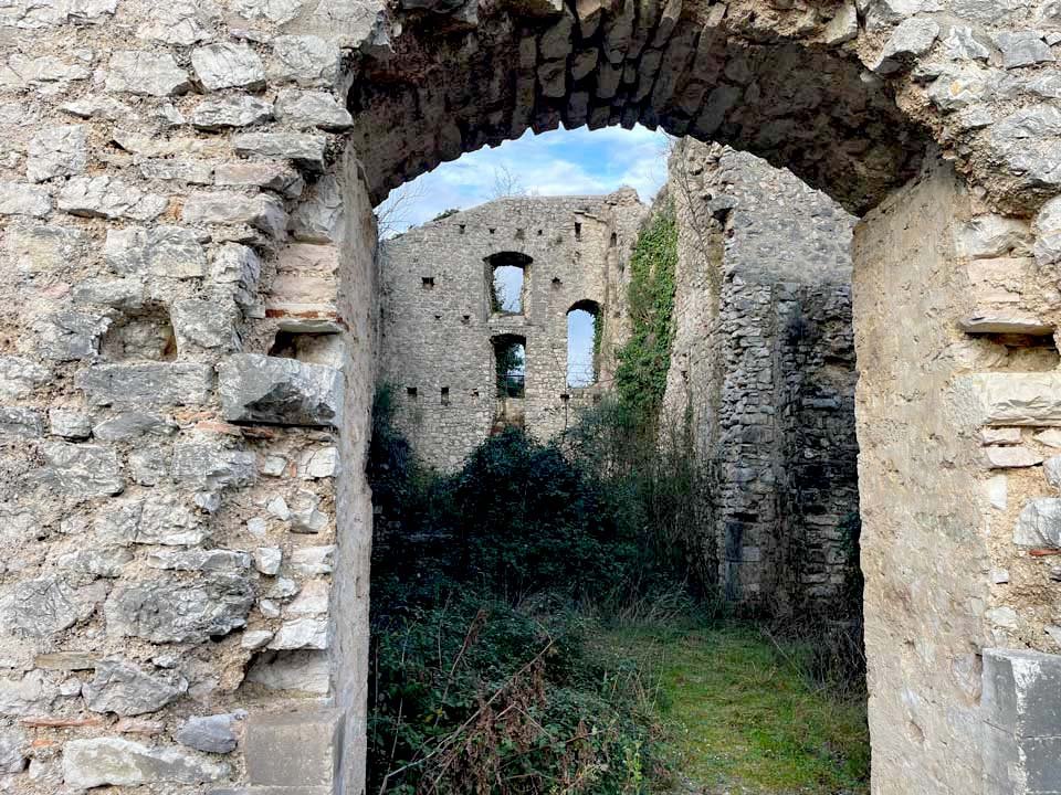 Alcune zone interne sono chiuse e interdette al passaggio, mentre sul retro della struttura è presente un ambiente riparato e accessibile che permette di affacciarsi direttamente sul lago, in direzione di Labro. Da qui si apre una vista spettacolare che ripaga la salita e regala un momento di quiete e contemplazione.